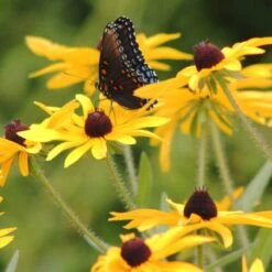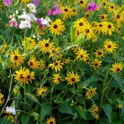No one knows who Susan was, but the flower is linked with “Sweet William” in an old English rhyme. This species was long thought to be native only to our midwest, spreading to both coasts after colonists and western pioneers felled the forests to allow the highly-prolific seed to spread. But recent research proves Black-Eyed Susan was indeed seen as far east as Maryland in early colonial times. There are many species of rudbeckia, many which have been hybridized into some of our most valued garden perennials. For related perennial species, see R. gloriosa.