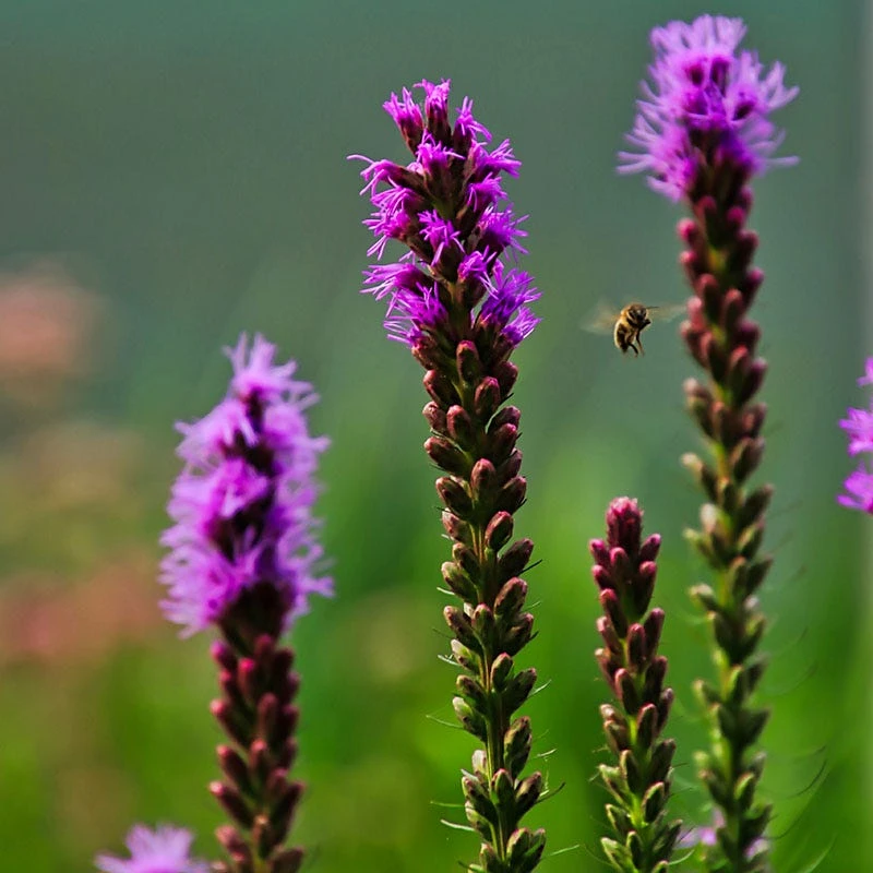 The roots are bulb-like, and you can start these flowers with seeds (from our Wildflower Seed Department) or perennial roots. Of course, developed roots are faster; Liatris takes two years to bloom from seed. Some of the perennial cultivars will even do well for you in partial shade, but be sure the plants stay dry most of the time.