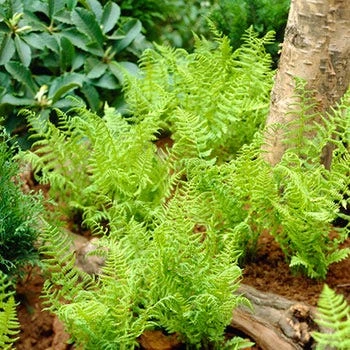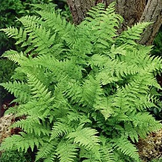 Lady Fern grows only about knee high at most, and is always beautiful with lighter green frilly ferns. The species needs shade, but is more tolerant of dry conditions than most ferns. Great for a shady wildflower garden.