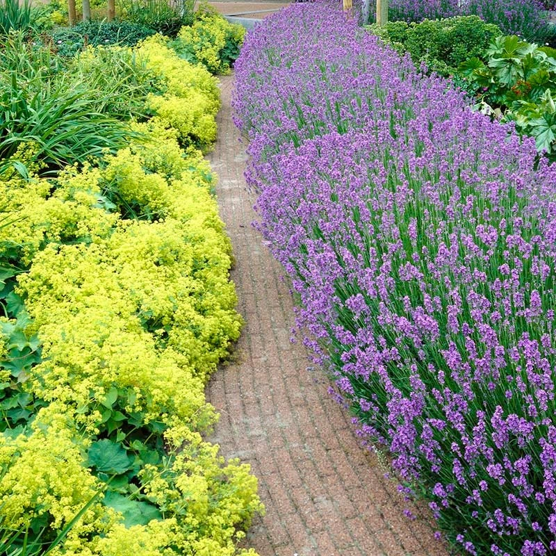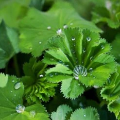 Lady’s Mantle is quite versatile in the garden. Plants tolerate full sun to full shade, making them useful beneath trees and in transitional areas of the garden. They are not particular about soil type or pH, but do not tolerate dry soils. Ideal conditions include moist, well-draining soils in morning sun. Pair with Geraniums, Peonies, Hostas, Catmint, and Ferns. Provide afternoon shade in hot climates. Lady’s Mantle originated in the temperate, mountainous Eastern Carpathians and the Caucasus, and plants are best suited for zones 3-8. Plants spread gradually by rhizomatous roots, and also reseed profusely under ideal growing conditions. Lady’s Mantle (Alchemilla mollis) are considered invasive in Oregon and Alaska. Seed production can be easily managed by trimming spent flowers after bloom. Lady’s Mantle flowers are commonly used in dried arrangements; to dry flowers, cut at the peak of bloom and hang to dry in a dark room.