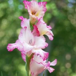 Tall and elegant ‘Priscilla’ is perfect for a display of vertical visual appeal in the back of your garden bed. Gladioli are easy-to-grow flower bulbs available in a broad range of colors. Bulbs are planted in spring, and by mid-summer they’ll be blooming. This means Glads are great for filling in your summer garden with quick-growing plants. Tall elegant flower spikes emerge from sword-like foliage, making Gladiolus an excellent cut flower.