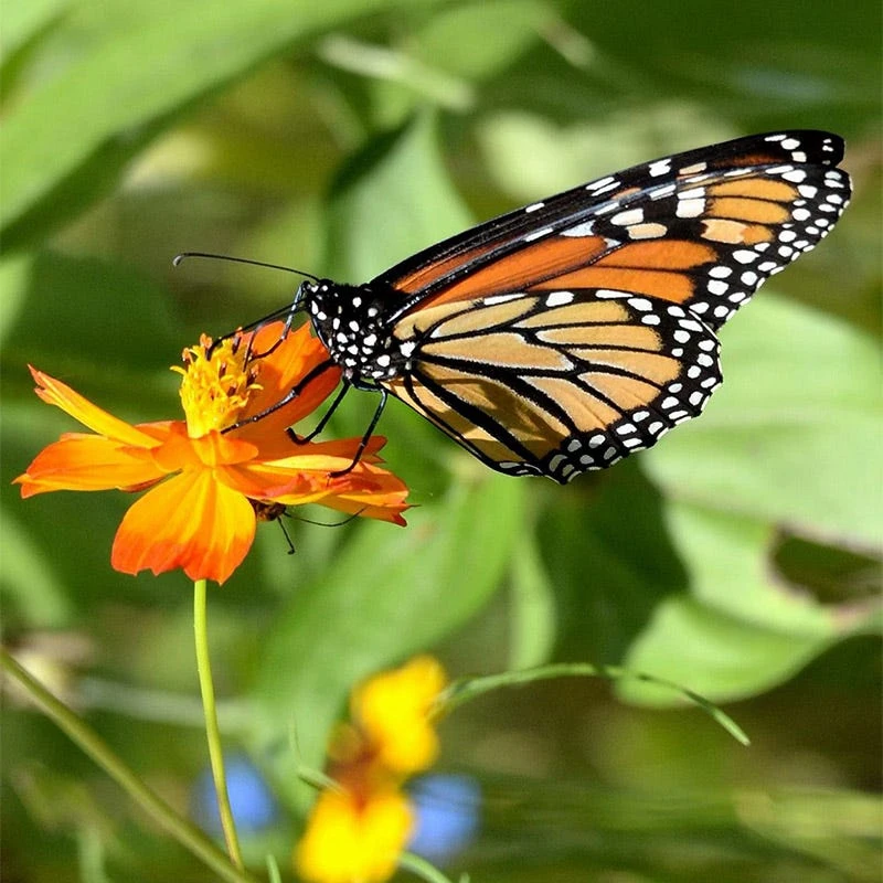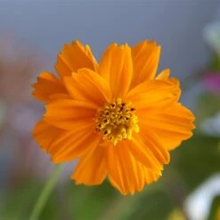 A favorite for flower-pressing crafts. Color varies from marigold/lemon yellow to bright orange. See also more familiar pink/white cosmos species, Cosmos bipinnatus.